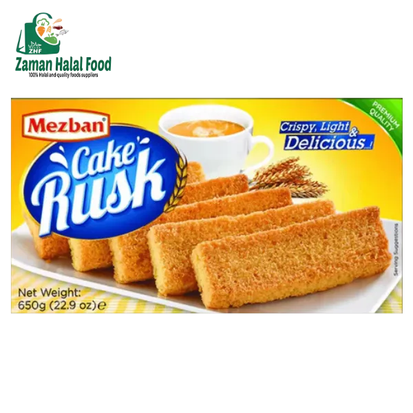 Rusk is more than a biscuit; it's a cherished ritual. Zaman Halal Food's Mezban Cake Rusk captures this tradition with slices of fine cake or bread that are baked until crisp and golden through a second baking process. The result is a sturdy, crunchy texture with a subtle sweetness and a hint of buttery flavor.