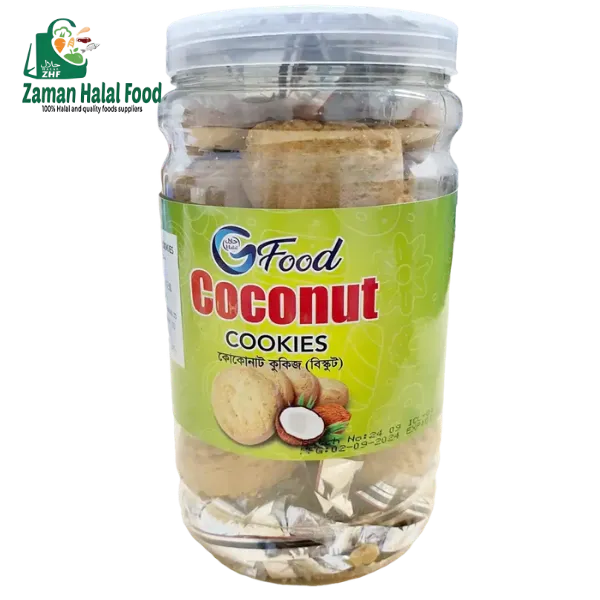Delight in the tropical, nutty sweetness of coconut in a perfectly crisp cookie. G-Food’s Coconut Cookies are baked with real coconut for an authentic flavor and a delightful, sandy texture, offering a taste of the tropics in every buttery bite.