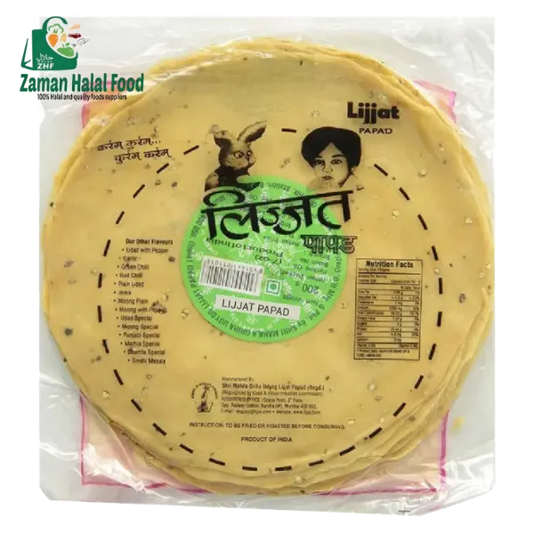 Plain Udad Papad is a delicious and versatile addition to your pantry, perfect for enhancing your meals or enjoying on its own. Available exclusively at Zaman Halal Food, your trusted destination for authentic Halal products.