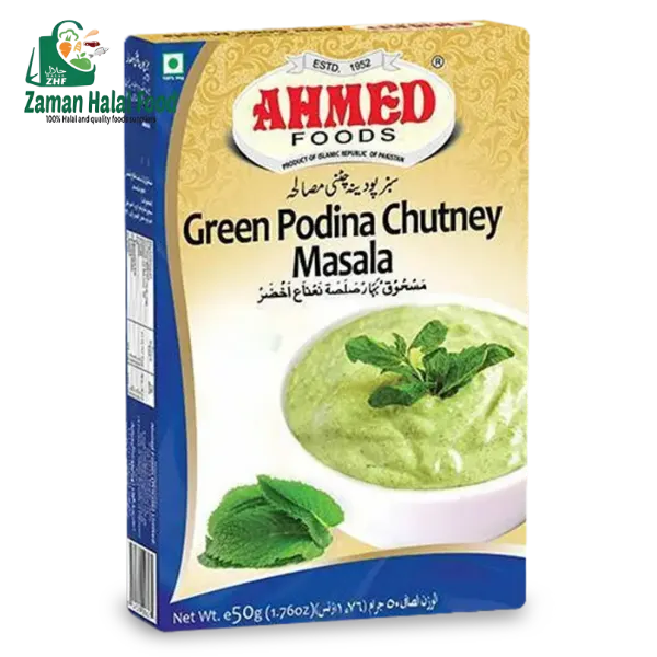 At Zaman Halal Food, we ensure that our products are carefully sourced and packed to maintain their freshness and quality. Ahmed Green Podina Chutney Masala is processed 100% halal, so you can enjoy it with confidence.