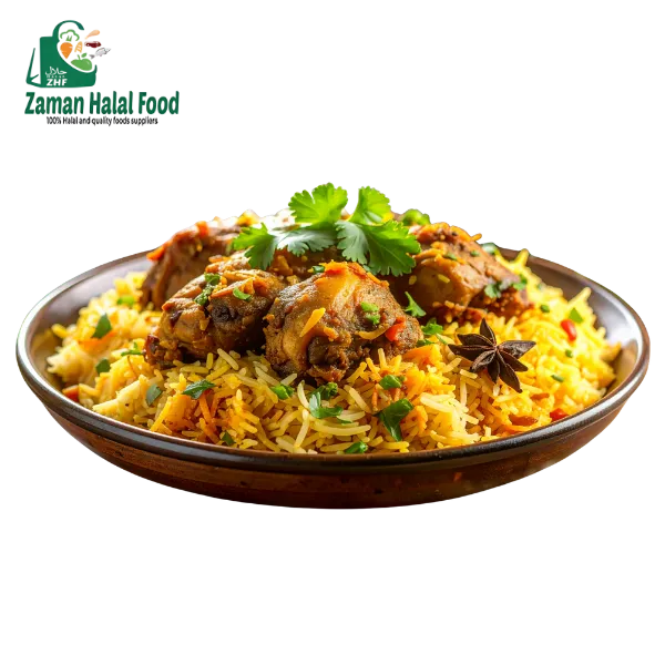 FeatureDetailsProduct NameChicken Biryani (Heat & Eat)TypeFully Cooked Ready-to-Eat MealMeatHalal ChickenRiceFragrant BasmatiProcessingHalal-certifiedPackagingHygienic, ready-to-heatCooking MethodMicrowave / Stovetop / Oven