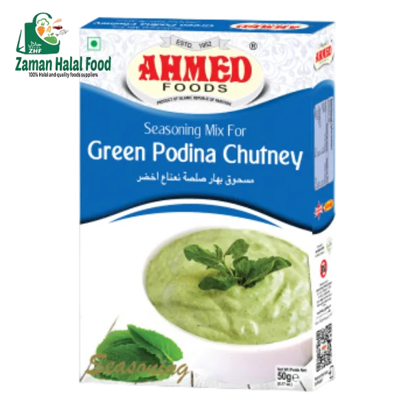 Add a burst of freshness to your culinary creations with Ahmed Green Podina Chutney Masala from Zaman Halal Food. This versatile spice blend is sure to become a favorite in your kitchen, bringing the vibrant flavors of mint and herbs to your dishes.