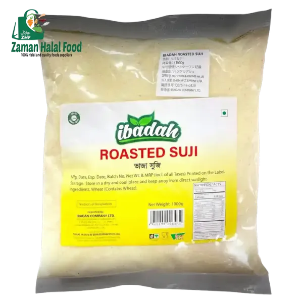 Zaman Halal Food ensures that IBADAH Roasted Suji is hygienically processed, clean, and fresh, making it a reliable choice for authentic cooking.
